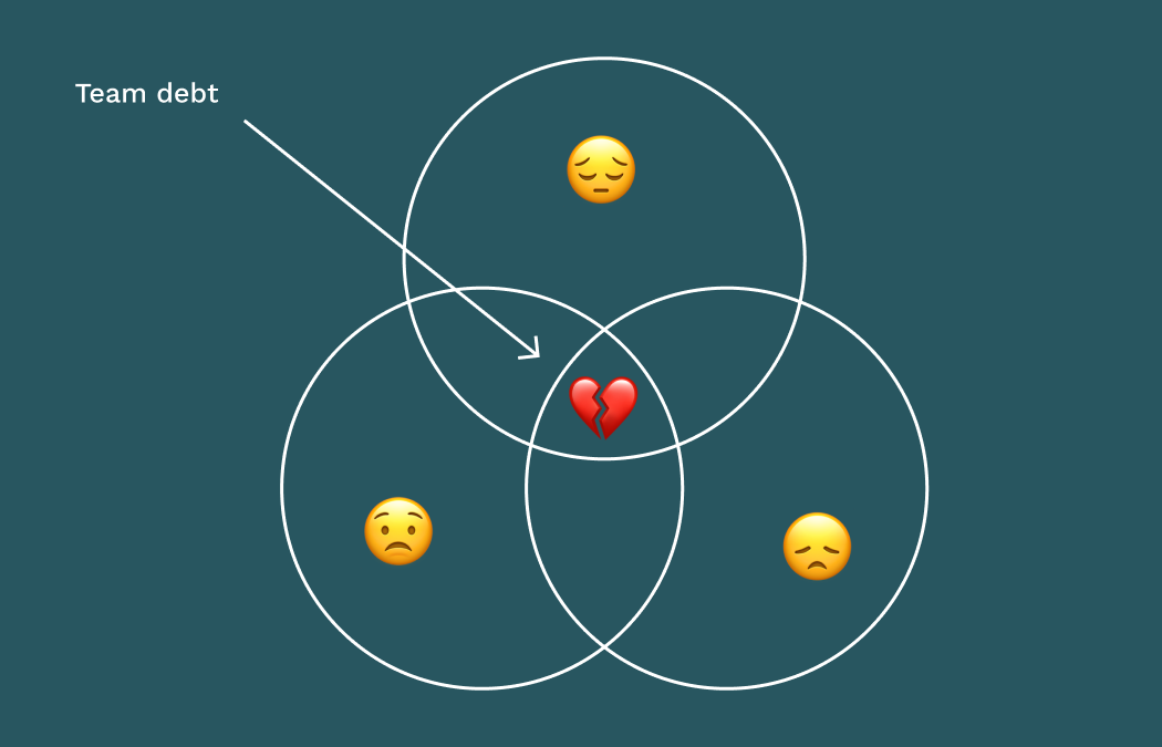 But there’s a third debt that isn’t usually spoken about: team debt. Team debt is the ‘less than perfect’ functioning of the delivery team – design, engineering. product, and others.